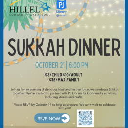 Join us for an evening of delicious food and festive fun as we celebrate Sukkot together! We're excited to partner with PJ Library for kid-friendly activities, including stories and crafts.